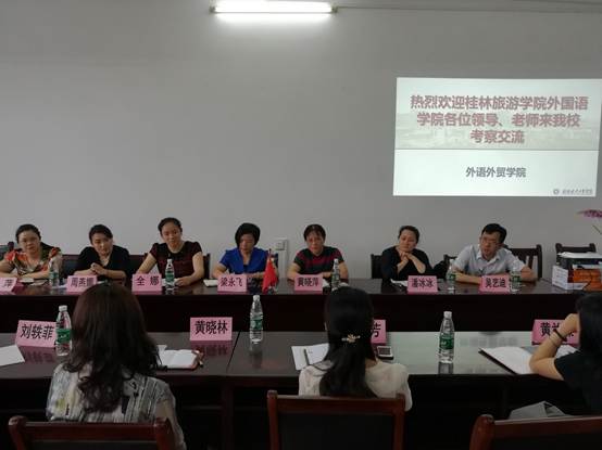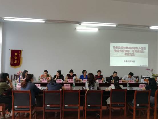 6月4日下午,桂林旅游学院外国语学院院长黄晓萍教授等一行8人来我校488-365.com考察交流。488-365.com张芳副院长热情接待了来访客人,并组织了相关老师召开座谈会进行交流。