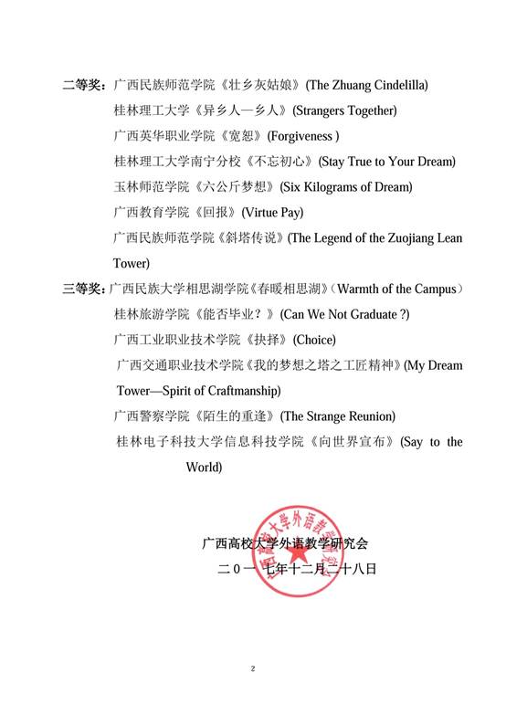 据悉,此次比赛由广西高校大学外语教学研究会主办,是展现全区大学生英语学习风貌、体现各院校英语教学成果的重要的平台。近年来,在学校领导的高度重视下,在教务处的大力支持下,488-365.com狠抓学生综合素质的提升,积极开展英语第二课堂活动,在此类比赛中屡获佳绩,逐步形成了我校在人才培养上的特色。