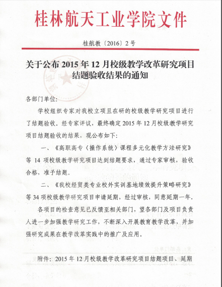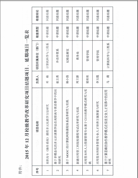 关于公布2015年12月校级教学改革研究项目结题验收结果的通知